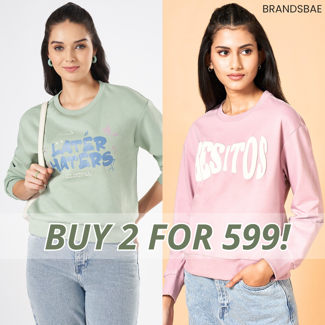 2 Stylish Sweatshirts in Sea Green & Baby Pink | Soft, Cozy & Trendy | Up to 50% Off