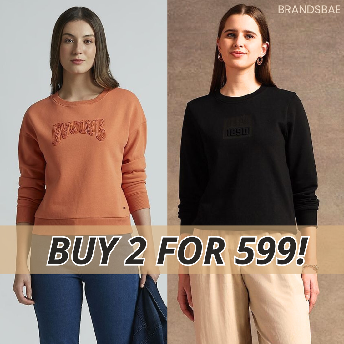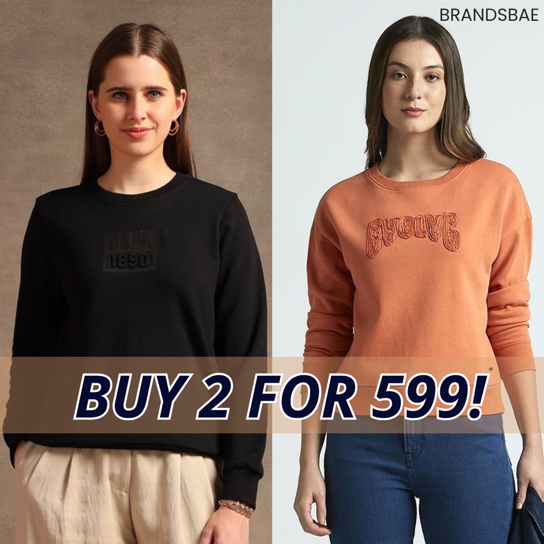 2 Stylish Sweatshirts in Black & Orange| Soft, Cozy & Trendy | Up to 50% Off |SS-08