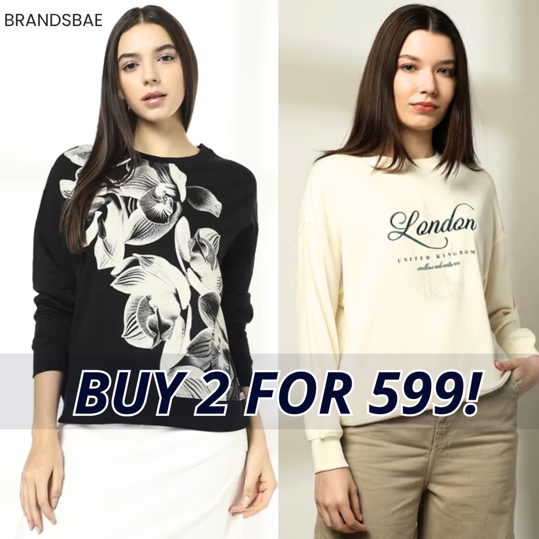 2 Stylish Sweatshirts in Black & Beige| Soft, Cozy & Trendy | Up to 50% Off |SS-07