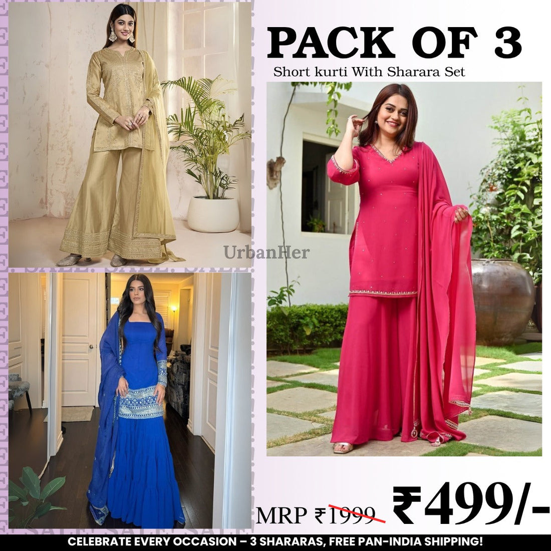 Experience the perfect blend of comfort and elegance with our 3-Piece Sharara Set for Women, crafted...