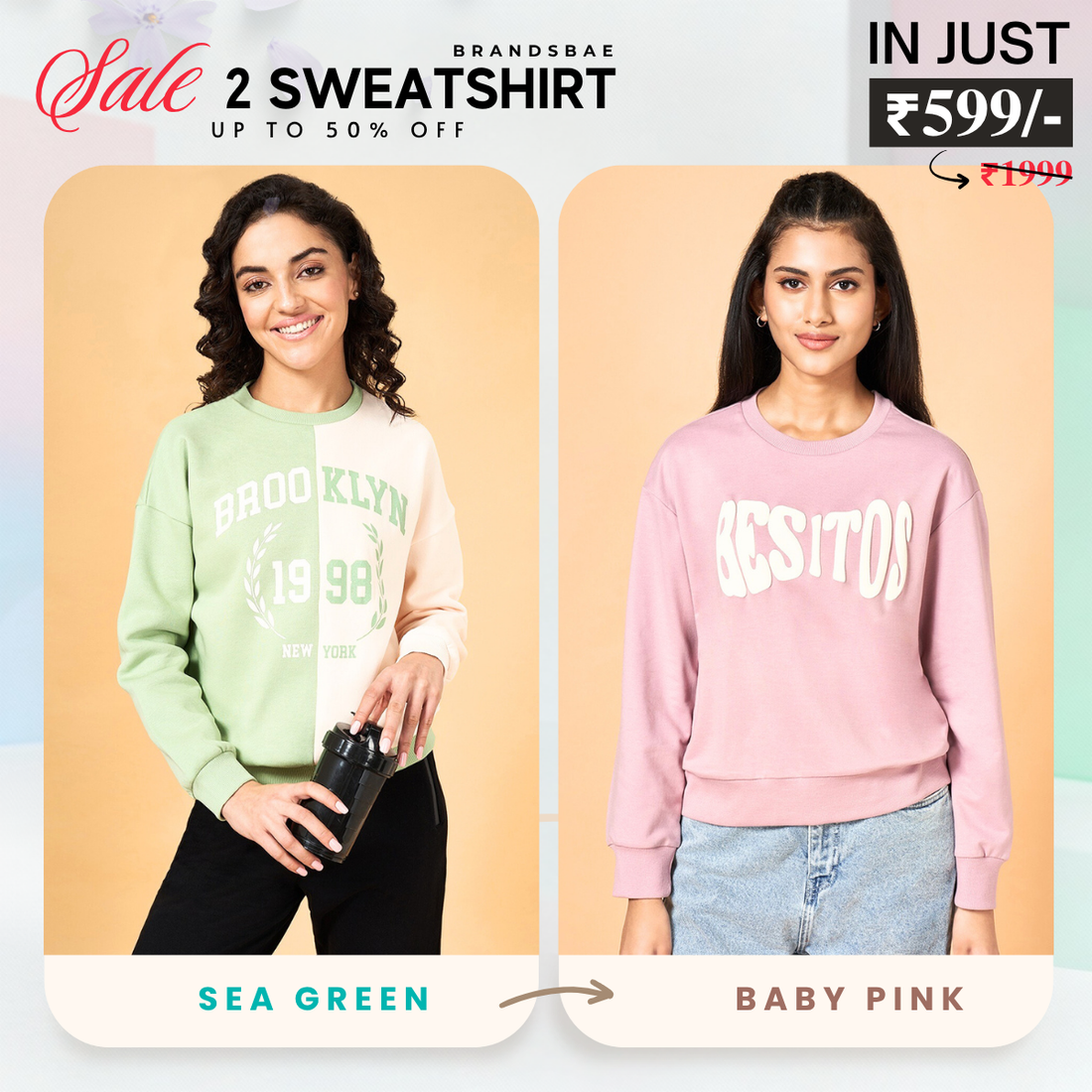 2 Stylish Sweatshirts in Sea Green & Baby Pink | Soft, Cozy & Trendy | Up to 50% Off