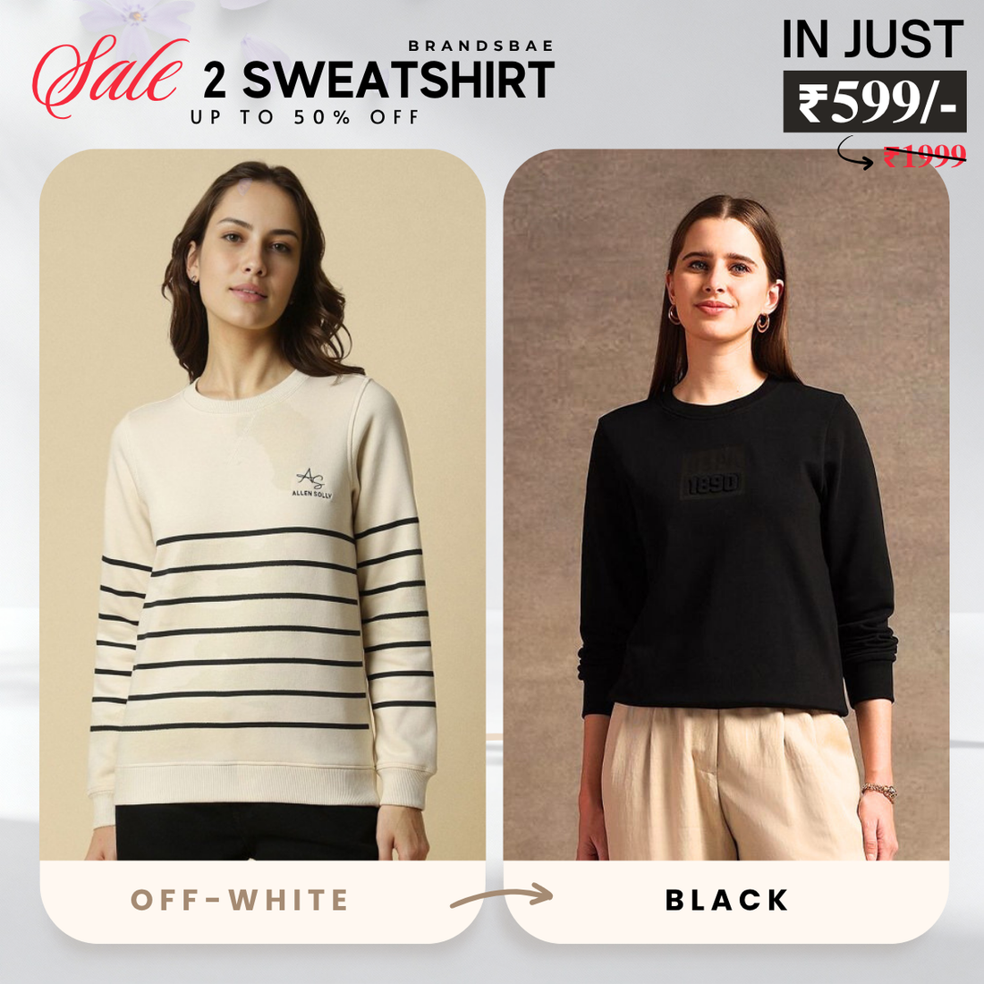 2 Stylish Sweatshirts in Beige & Black | Soft, Cozy & Trendy | Up to 50% Off |SS-02