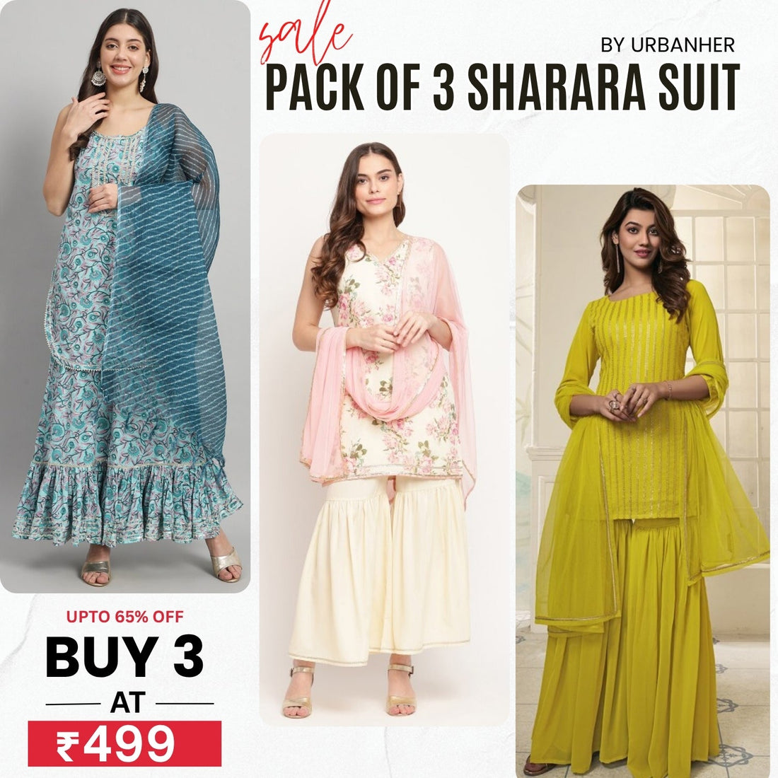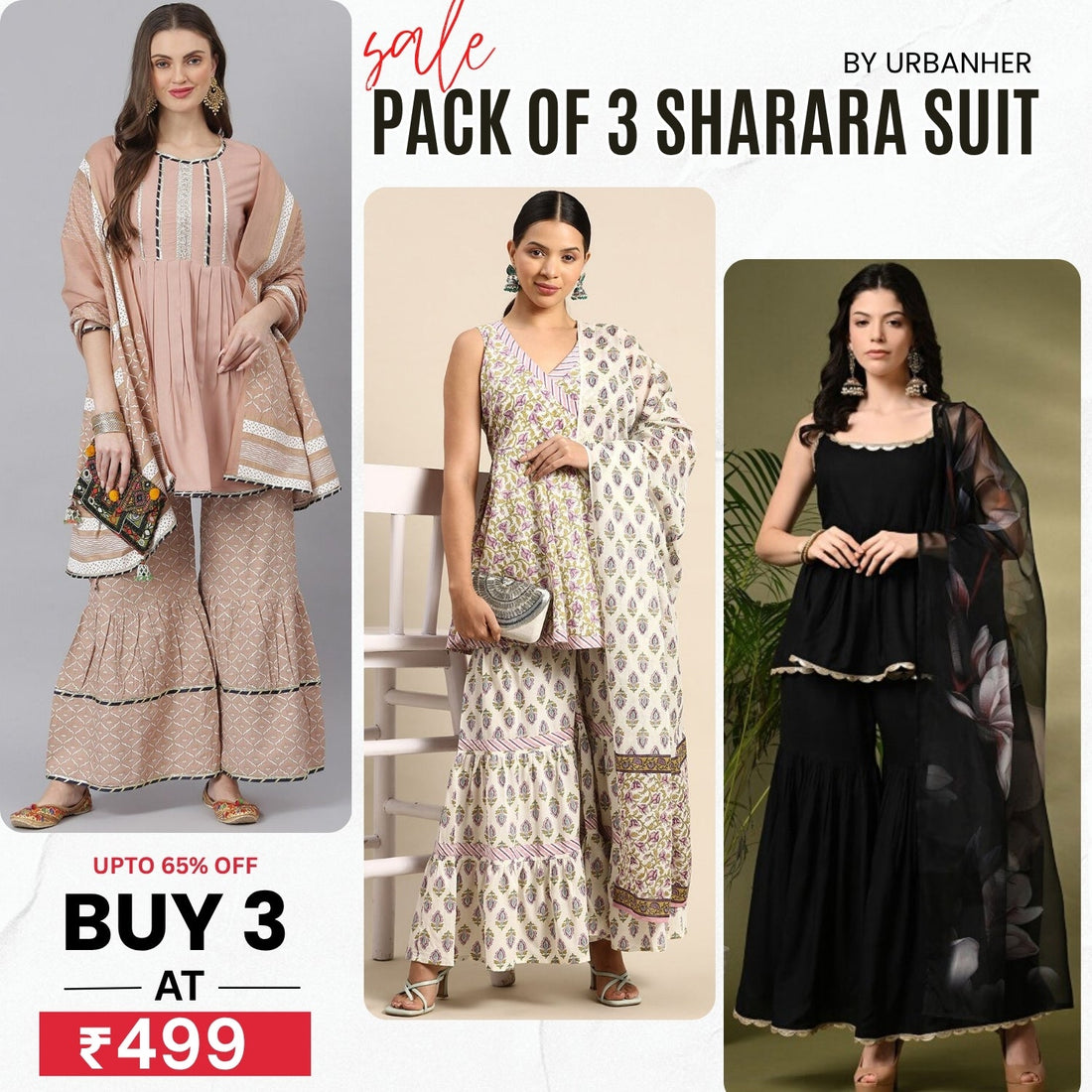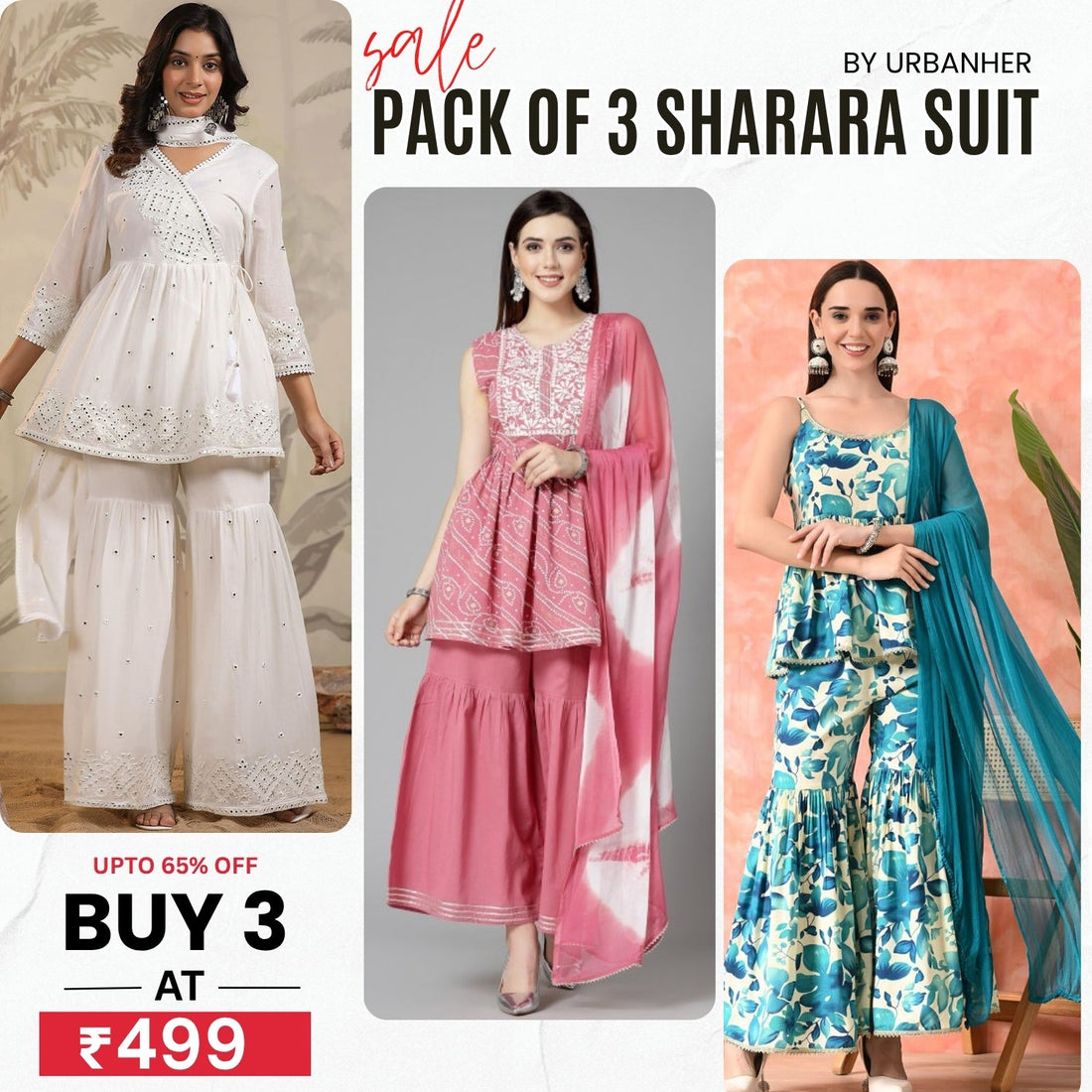 3-Piece Cotton Sharara Set with Dupatta for Women – Soft, Comfortable & Stylish Combo Pack | SD-11