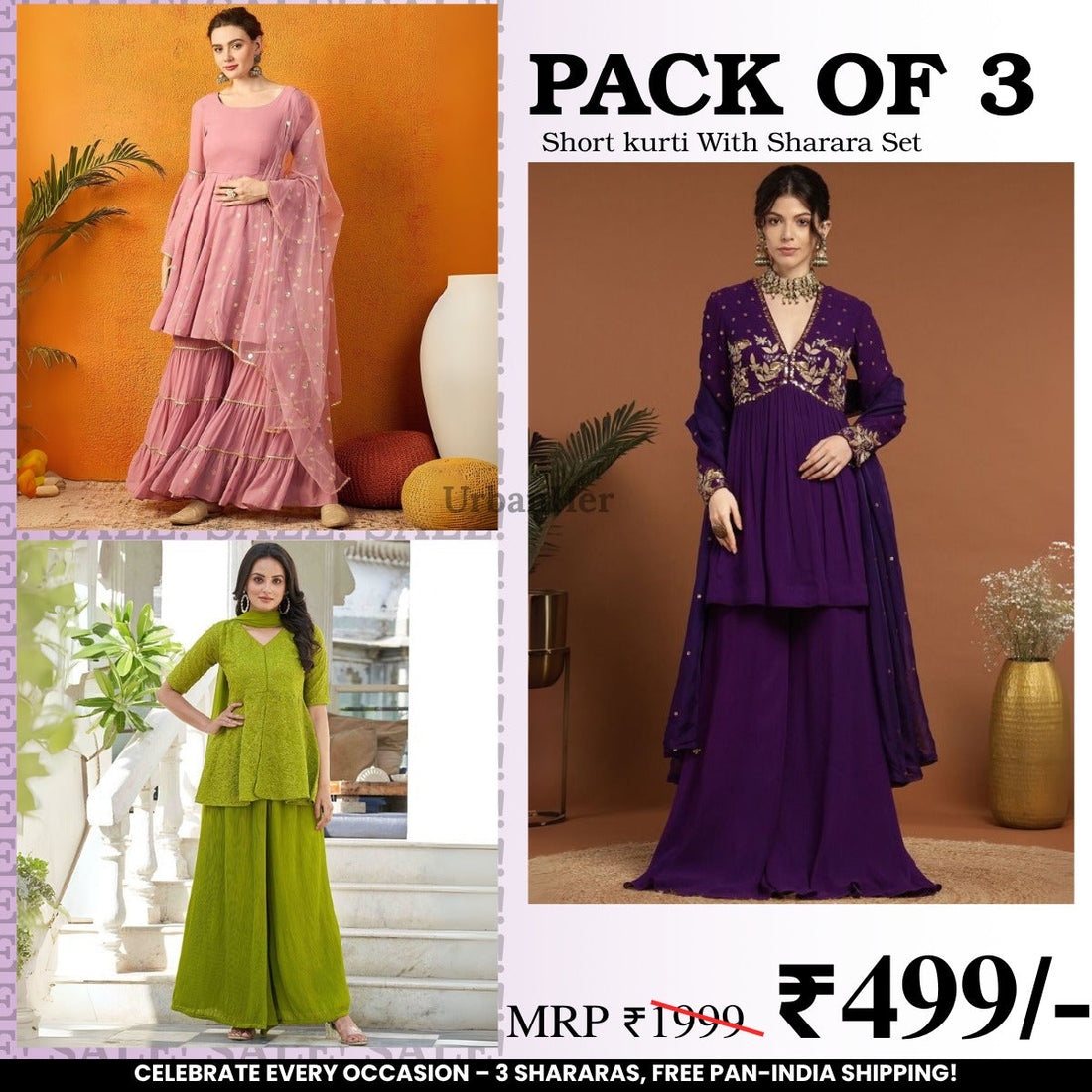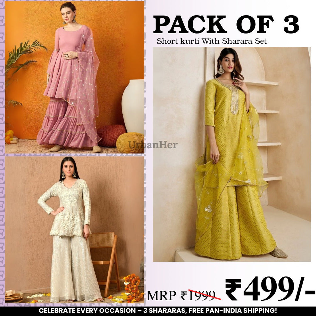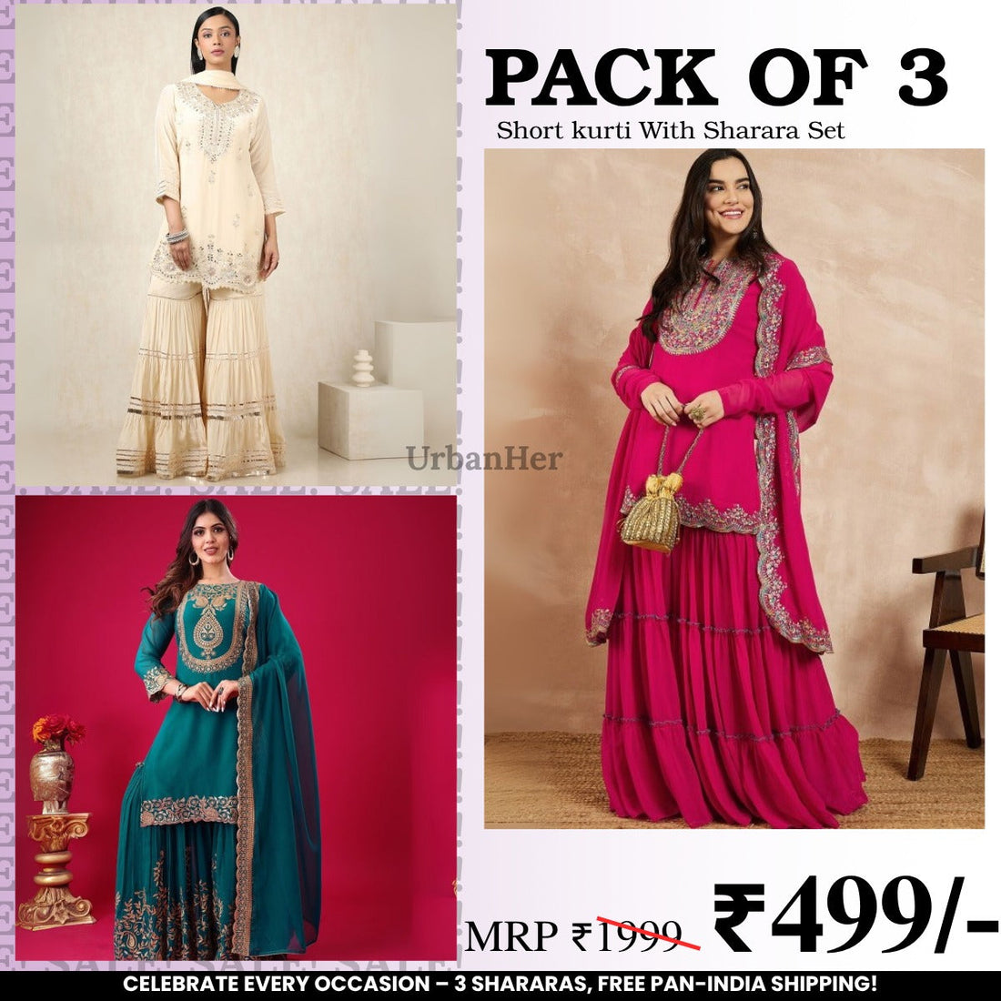 Experience the perfect blend of comfort and elegance with our 3-Piece Sharara Set for Women, crafted...
