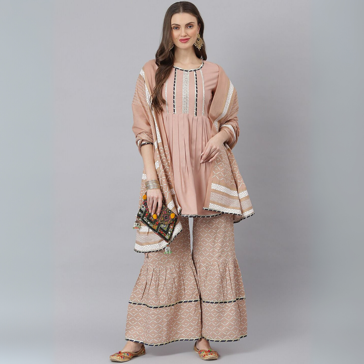 Great Value Combo: Get a complete outfit—sharara, kurti, and dupatta—in one affordable pack.